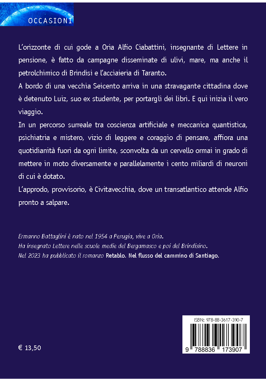 In un percorso surreale tra coscienza artificiale e meccanica quantistica, psichiatria e mistero, vizio di leggere e coraggio di pensare, affiora una quotidianità fuori da ogni limite, sconvolta da un cervello ormai in grado di mettere in moto diversamente e parallelamente i cento miliardi di neuroni di cui è dotato.