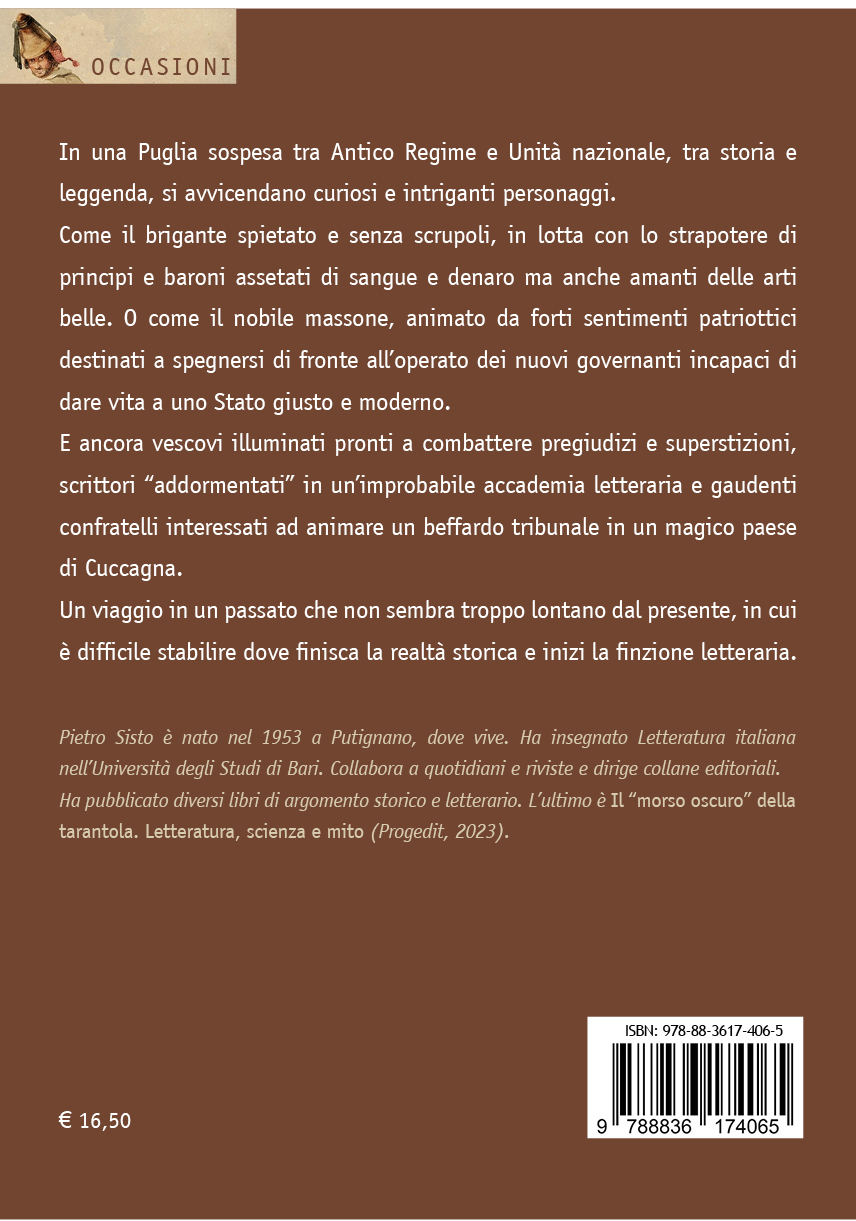 In una Puglia sospesa tra Antico Regime e Unità nazionale, tra storia e leggenda, si avvicendano curiosi e intriganti personaggi.