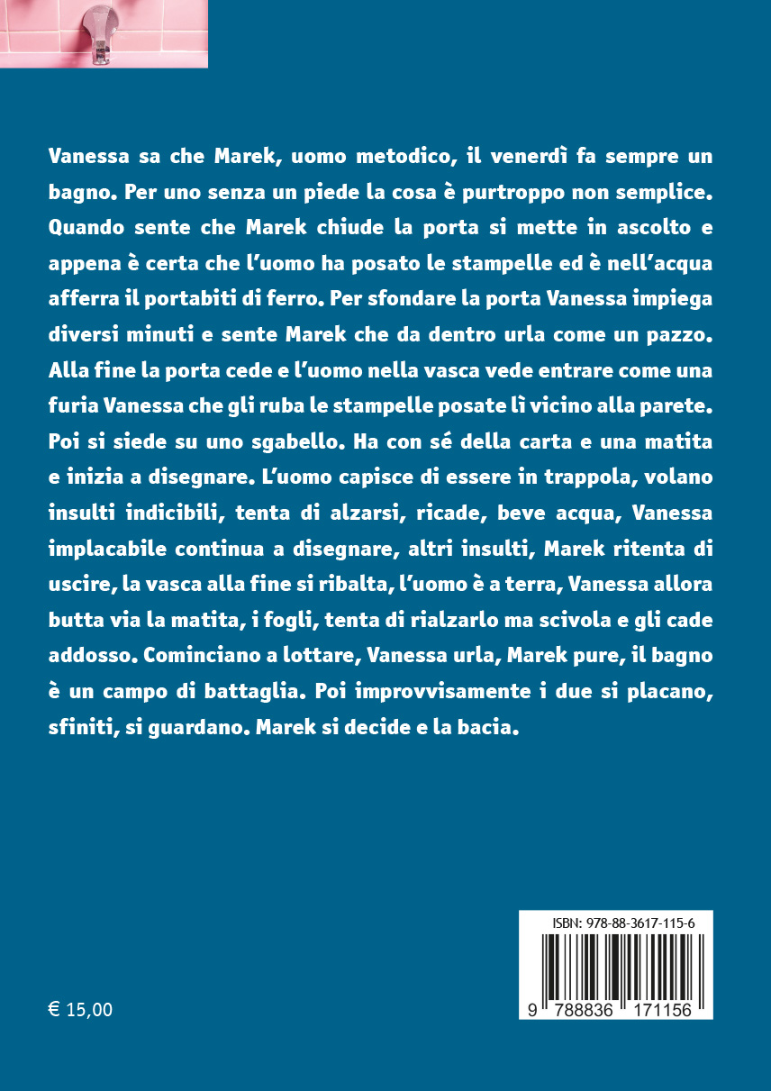 Vanessa sa che Marek, uomo metodico, il venerdì fa sempre un bagno. Per uno senza un piede la cosa è purtroppo non semplice. Quando sente che Marek chiude la porta si mette in ascolto e appena è certa che l’uomo ha posato le stampelle ed è nell’acqua afferra il portabiti di ferro. Per sfondare la porta Vanessa impiega diversi minuti e sente Marek che da dentro urla come un pazzo. Alla fine la porta cede e l’uomo nella vasca vede entrare come una furia Vanessa che gli ruba le stampelle posate lì vicino alla parete. Poi si siede su uno sgabello. Ha con sé della carta e una matita e inizia a disegnare. L’uomo capisce di essere in trappola, volano insulti indicibili, tenta di alzarsi, ricade, beve acqua, Vanessa implacabile continua a disegnare, altri insulti, Marek ritenta di uscire, la vasca alla fine si ribalta, l’uomo è a terra, Vanessa allora butta via la matita, i fogli, tenta di rialzarlo ma scivola e gli cade addosso. Cominciano a lottare, Vanessa urla, Marek pure, il bagno è un campo di battaglia. Poi improvvisamente i due si placano, sfiniti, si guardano. Marek si decide e la bacia.