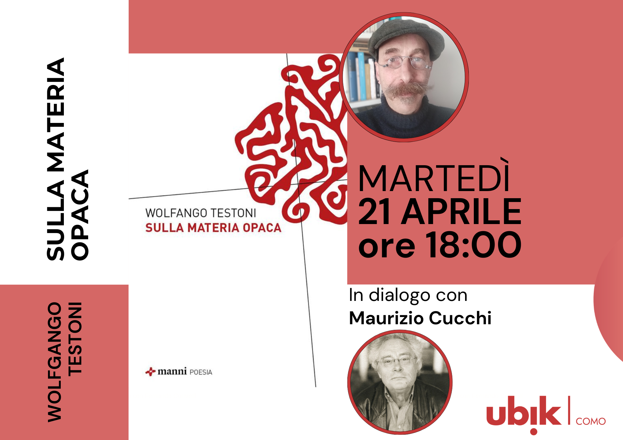 Martedì 21 aprile alle 18 Wolfango Testoni presenta Sulla materia opaca alla Ubik di Como con Maurizio Cucchi.