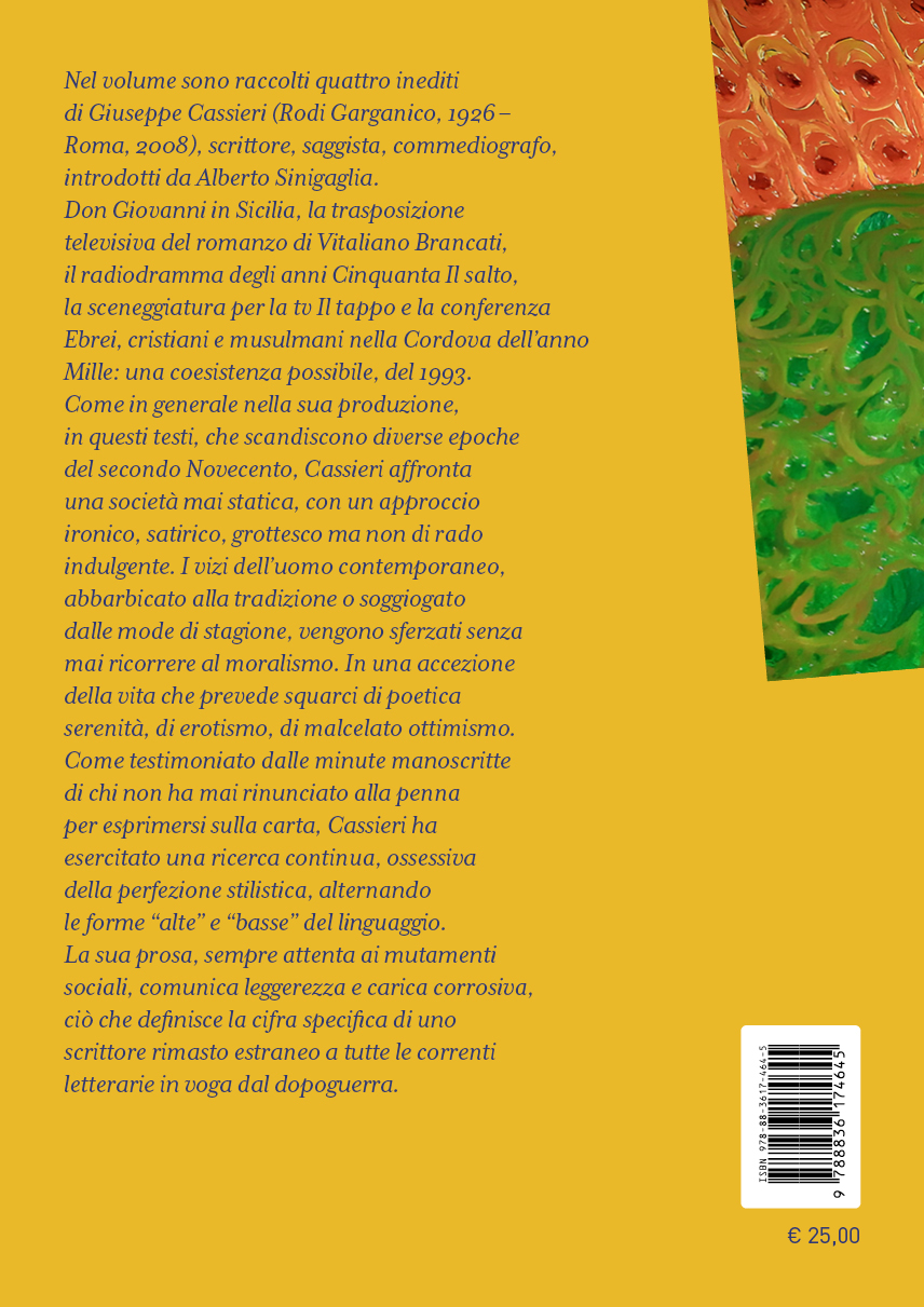 Nel volume sono raccolti quattro inediti di Giuseppe Cassieri (Rodi Garganico, 1926 – Roma, 2008), scrittore, saggista, commediografo, introdotti da Alberto Sinigaglia.