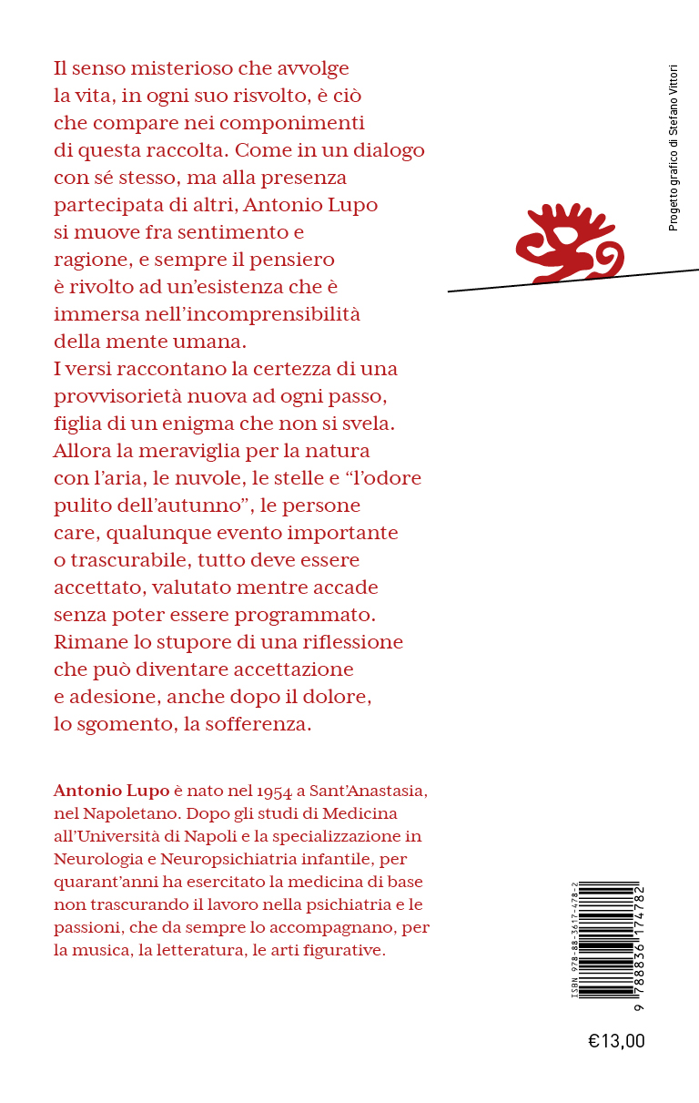 Il senso misterioso che avvolge la vita, in ogni suo risvolto, è ciò che compare nei componimenti di questa raccolta. Come in un dialogo con sé stesso, ma alla presenza partecipata di altri, Antonio Lupo si muove fra sentimento e ragione, e sempre il pensiero è rivolto ad un’esistenza che è immersa nell’incomprensibilità della mente umana.