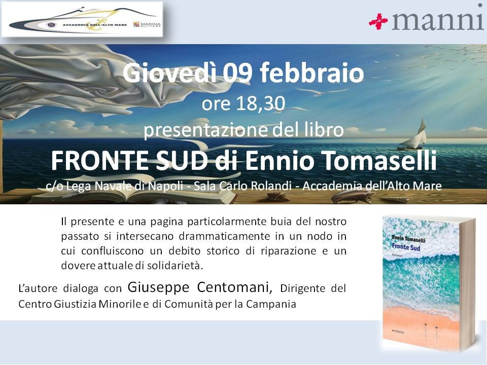 Giovedì 9 febbraio Ennio Tomaselli presenta Fronte Sud presso la Lega Navale di Napoli, nella Saala Rolandi dell'Accademia dell'Alto mare, insieme a Giuseppe Centomani.